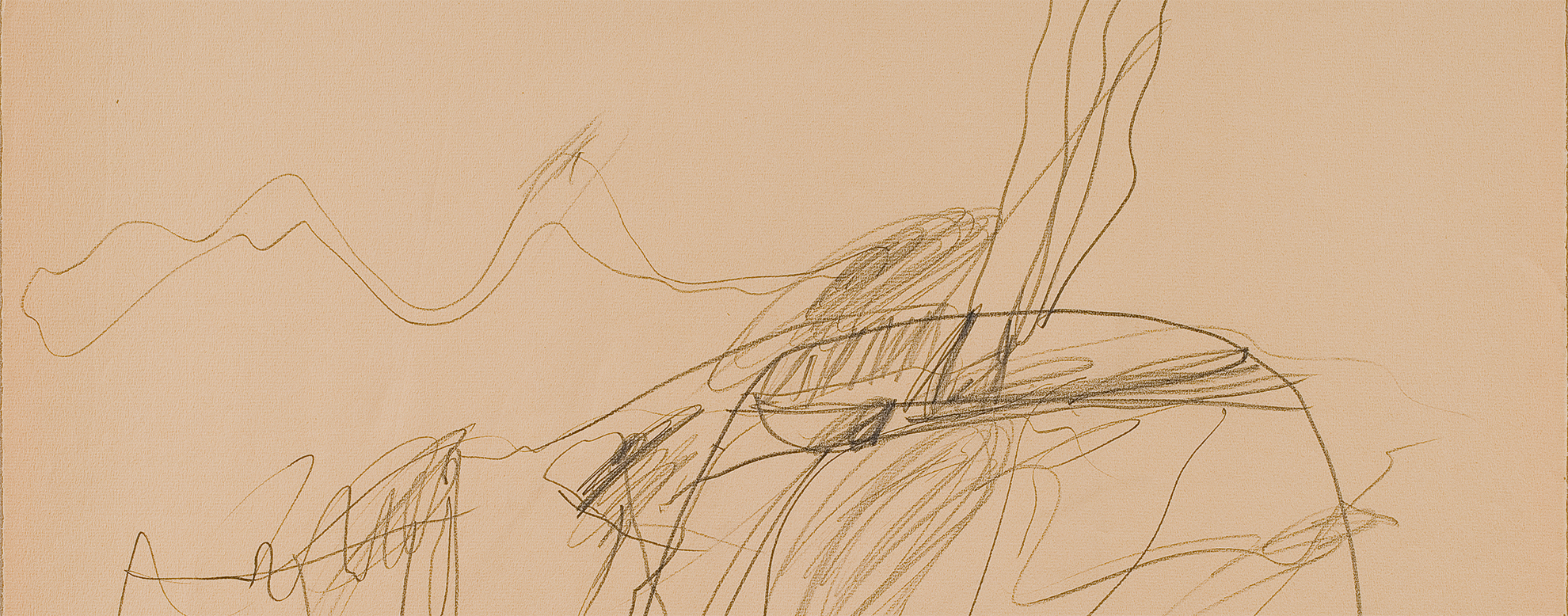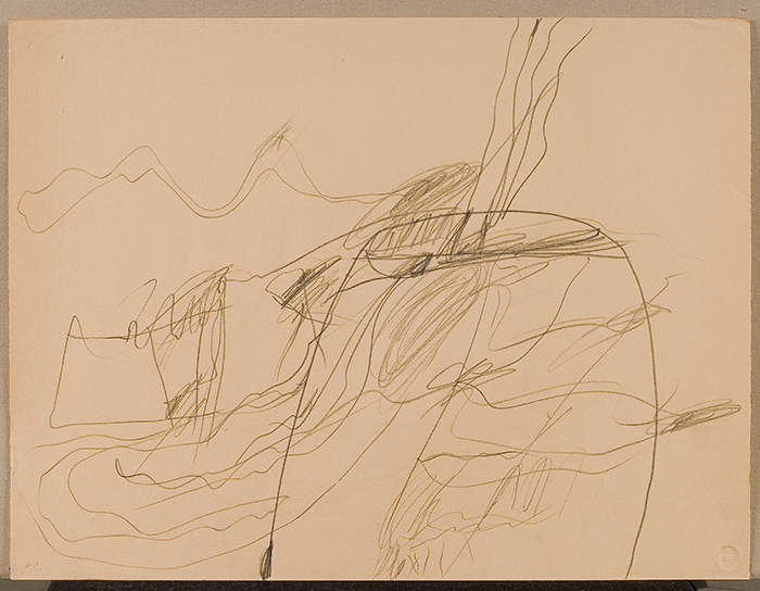 Cy Twombly, Untitled, 1954. Graphite on paper, 19 × 25 1/8 in. (48.3 × 63.8 cm). The Menil Collection, Houston, Gift of the Cy Twombly Foundation. © Cy Twombly Foundation