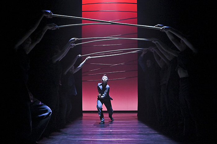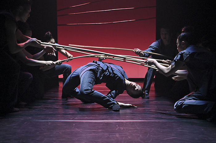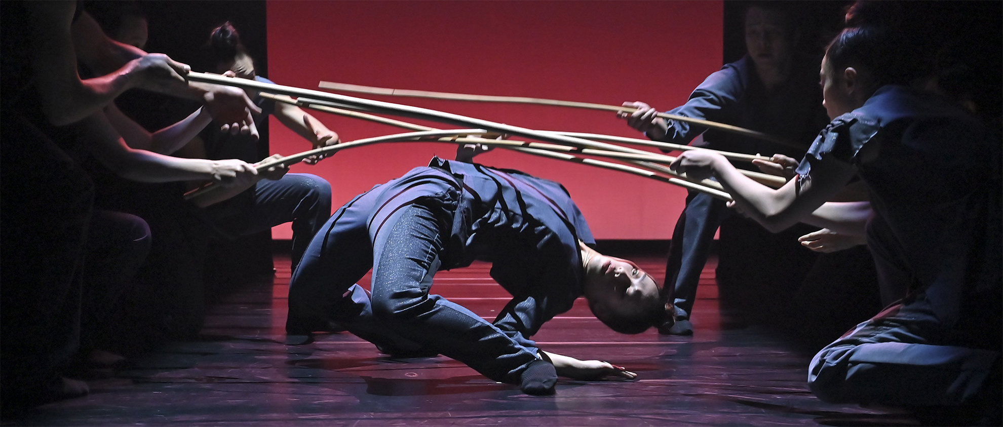 The title character of Alan Parker’s 1984 film yearns to fly like his beloved birds, but like the dancers of Hung-Chung’s work, finds himself grounded by the physical constraints of the human world. At one point in the dance, rattan poles form a cage. Another prop taken from Chinese opera, the rawness of the rattan poles symbolizes, for Hung-Chung, our original form or a return to self. He adds, “Aside from the props, the lighting and the movement create a symmetry that will break through inside people’s hearts and minds.”