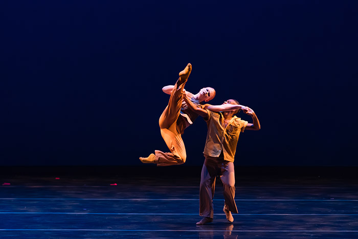 Pegasus Contemporary Ballet members Emma Krusling, Elijah Lancaster in Love Language, choreography by Norbert De La Cruz III, music by Jacob Metcalf. Photo by DFW Dance Photography.