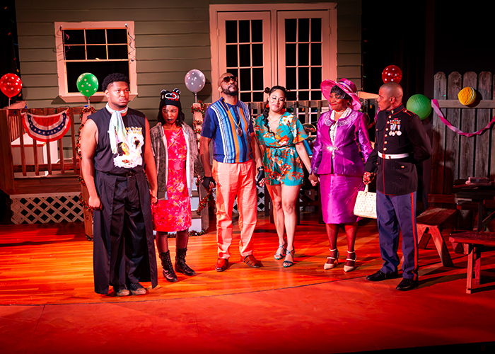 The cast in the Austin Playhouse production of Fat Ham, directed by Ben Wolfe. Photo by Steve Rogers Photography.