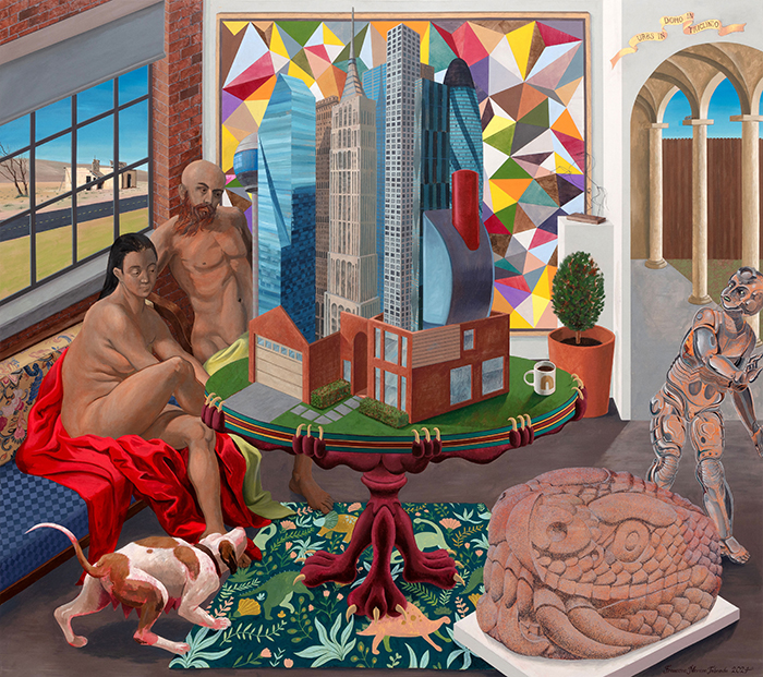 Francisco Moreno, A City in a House in a Room, 2024. acrylic on canvas. 97 x 110 in (246.4 x 279.4 cm) Image courtesy of the artist. Photo: Kevin Todora.