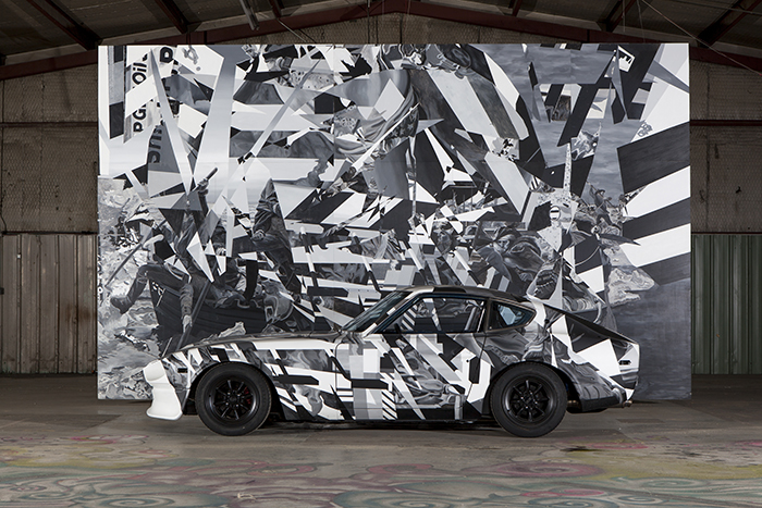 Francisco Moreno, WCD Project (2012-2015). acrylic on panel, oil enamel on 1975 Datsun 280Z, 144" x 288" x 60" and 47" x 155" x 64.5" Image courtesy of the artist. Photo: Kevin Todora.