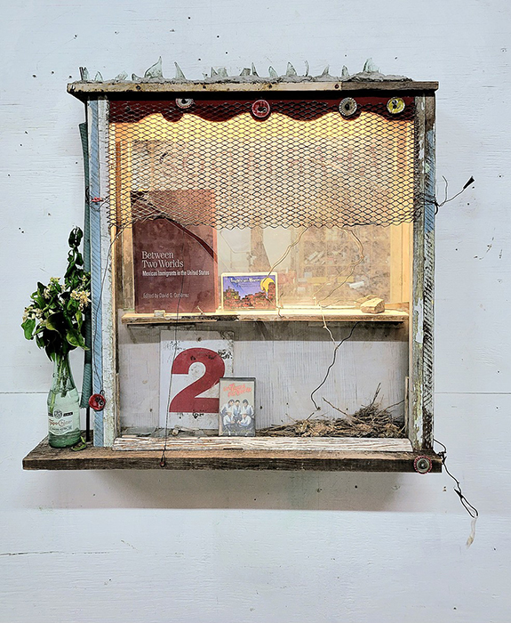 He spoke of globalized borders, thresholds that shape movement everywhere. The pieces operate at that register. Viewers may first sense a separation, a journey, an inventory of what must be carried or left behind; only later does the geography narrow to the U.S.–Mexico line. Even arrangement becomes metaphor: things that “belong outside” and those that “belong inside” often face each other across a window. What happens when they trade places?